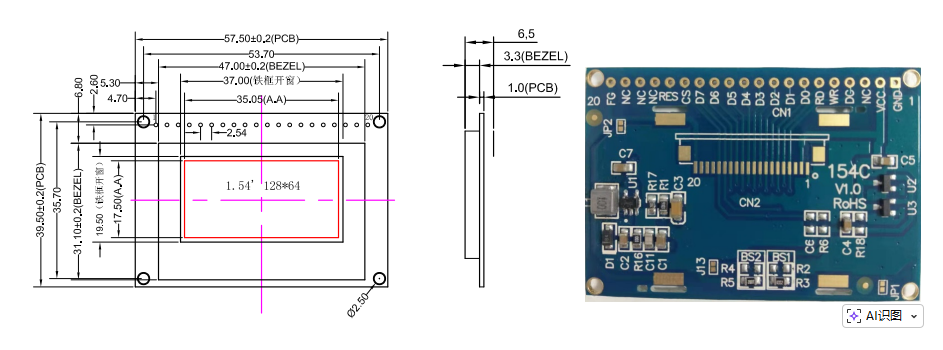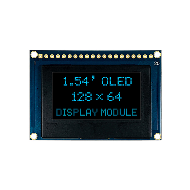 The 1.54-inch OLED display module presented here is a compact 128×64 dot matrix graphic display utilizing PMOLED technology and driven by the SSD1305 controller through an SPI interface. It supports monochrome emission in white, yellow, or blue, offers full viewing angles, and maintains stable performance across a wide temperature range from -40°C to 80°C. With a module size of 57.5 × 39.5 × 6.5 mm and an active area of 35.05 × 17.5 mm, it is designed for reliable integration into embedded systems requiring clear and efficient visual output.