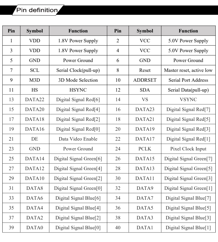 | Pixel Array | RGB Vertical Stripe |