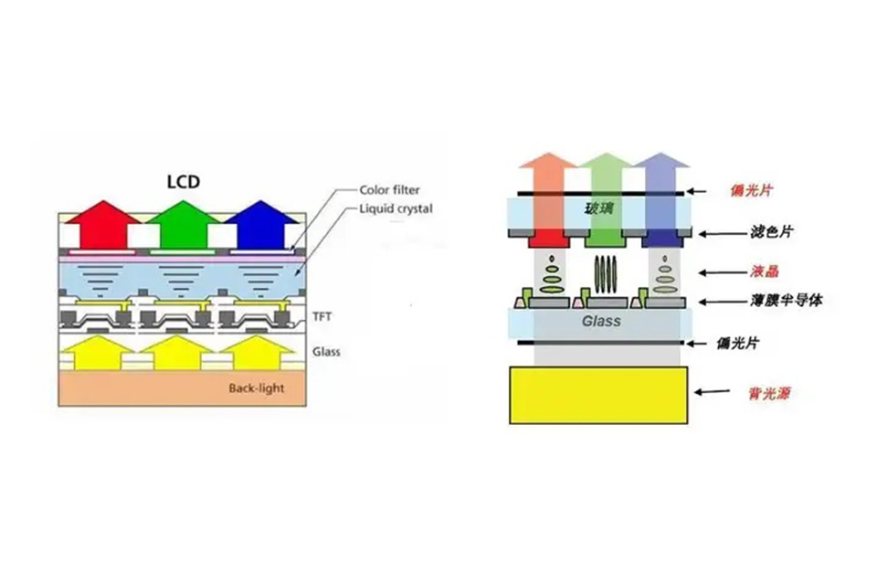 Simply put, its panel mainly has three layers: a backlight layer, a liquid crystal layer, and a color filter layer.