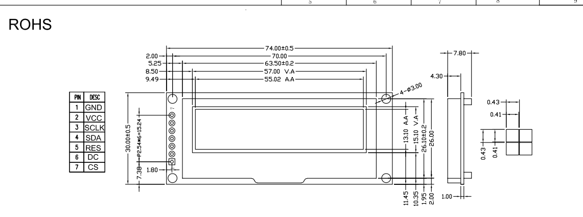 With a resolution of 128×32 dots distributed over a 2.23-inch active area, the display achieves a clear and concise visual output. The pixel pitch of 0.43 × 0.41 mm ensures consistent spacing, while the pixel size of 0.41 × 0.39 mm contributes to uniform luminance across the panel.