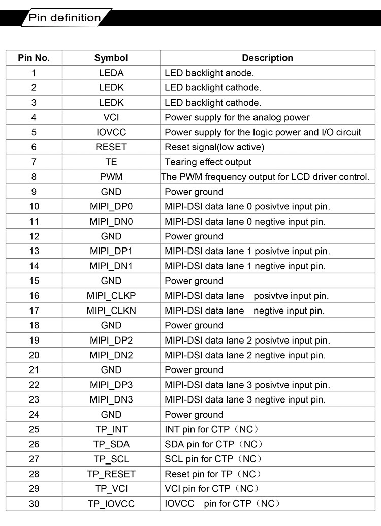 The module uses a 30-pin connector, ensuring compatibility with a wide range of devices. The MIPI interface not only supports high-speed communication but also integrates well with various graphical processors, making it a versatile choice for embedded systems and custom-built displays.